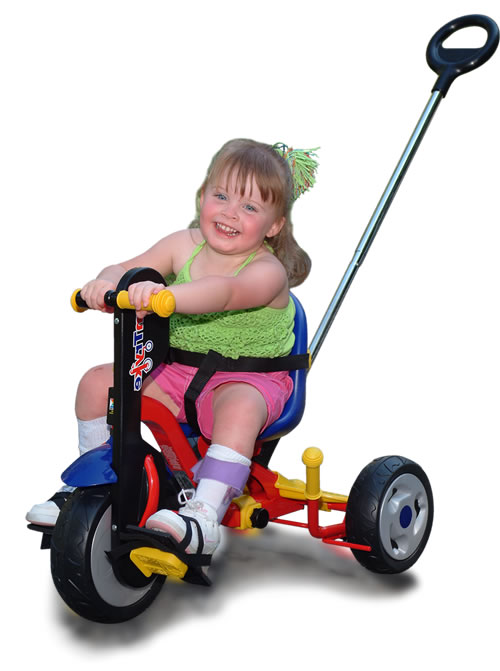 tricycle is hand and/or foot driven. It improves motor coordination,